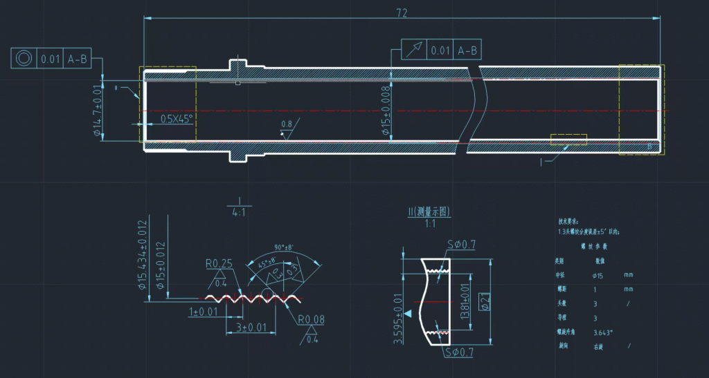 • Surface Finish: The thread finish was mirror-smooth, typical of high-quality thread milling.